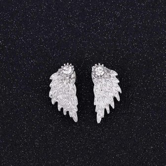 Trendy Engel Vleugel Oorbel Met Steentje in Zilver