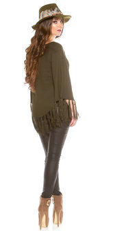 Trendy Fedora Hoed met Deco Feathers & Elements in Kaki