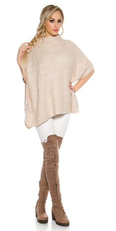 Trendy KouCla Chunky Knit Poncho met Turtlenek in Roze